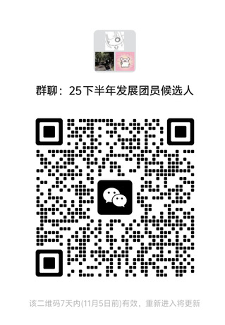 1.11月5日12:00前,学院团委团务部通过问卷收集意愿参加竞选同学的信息。各支部有意向参加发展团员竞选且符合上文个人条件的同学扫描下文二维码,确保填写完成、提交和入群;