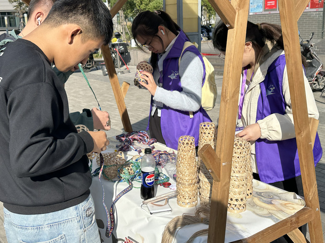 民族游戏区成为互动体验的热门打卡地。汉族传统游戏投壶趣味十足,在精准投掷中感受中华传统文化的雅致韵味;黎族跳竹竿则充满动感与协作性,师生们在欢声笑语中体验黎族人民的热情与活力,沉浸式感受传统游戏背后的民族智慧。