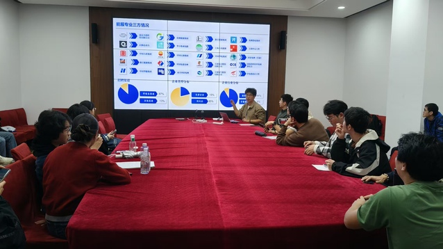 为构建全员参与的就业服务网络,学院积极动员专业课教师力量,加强辅导员业务培训,并通过就业信息群、企业资源群等多种渠道,精准推送招聘信息,拓展就业资源。在国际经济与贸易、经济学专业座谈会上,毕业班辅导员展晴晴除分析就业去向外,还就成绩单、推荐表、网签流程等实务操作进行详细讲解,为学生提供一站式就业支持。