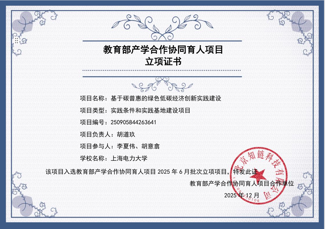 应用经济系胡道玖、李夏伟、胡意翕老师团队申报的教育部产学合作协同育人项目:“基于碳普惠的绿色低碳经济创新实践建设”项目,获得2025年教育部产教合作协同育人项目立项。该项目有利于进一步推进校企合作深度与广度,促进专业发展与国家“双碳”战略的有机融合,不断提升专业整合与链接企业与社会资源的能力,有力推动专业的高质量发展。教育部产学合作协同育人项目是由教育部高教司发起,以企业提供技术支持和产业资源的形式,高教司负责搭建平台,管理立项指标,进行项目监管和项目指导,开展校企合作协同育人工作,形成协同育人成果,推动高校教育改革和提升人才培养质量。产学合作协同育人项目是校企合作的新模式,教育改革的新方向,开放办学的新旗帜,产教融合的新标杆。高校吸取产业智慧,整合产业资源,锻炼师资队伍,解决教改难题,形成教育成果,有利于高等教育的可持续发展。